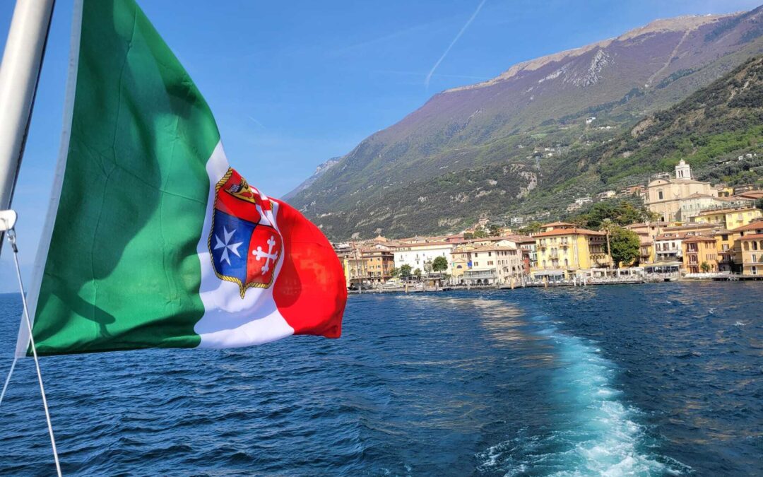 Gardské jezero - italská vlajka - loď